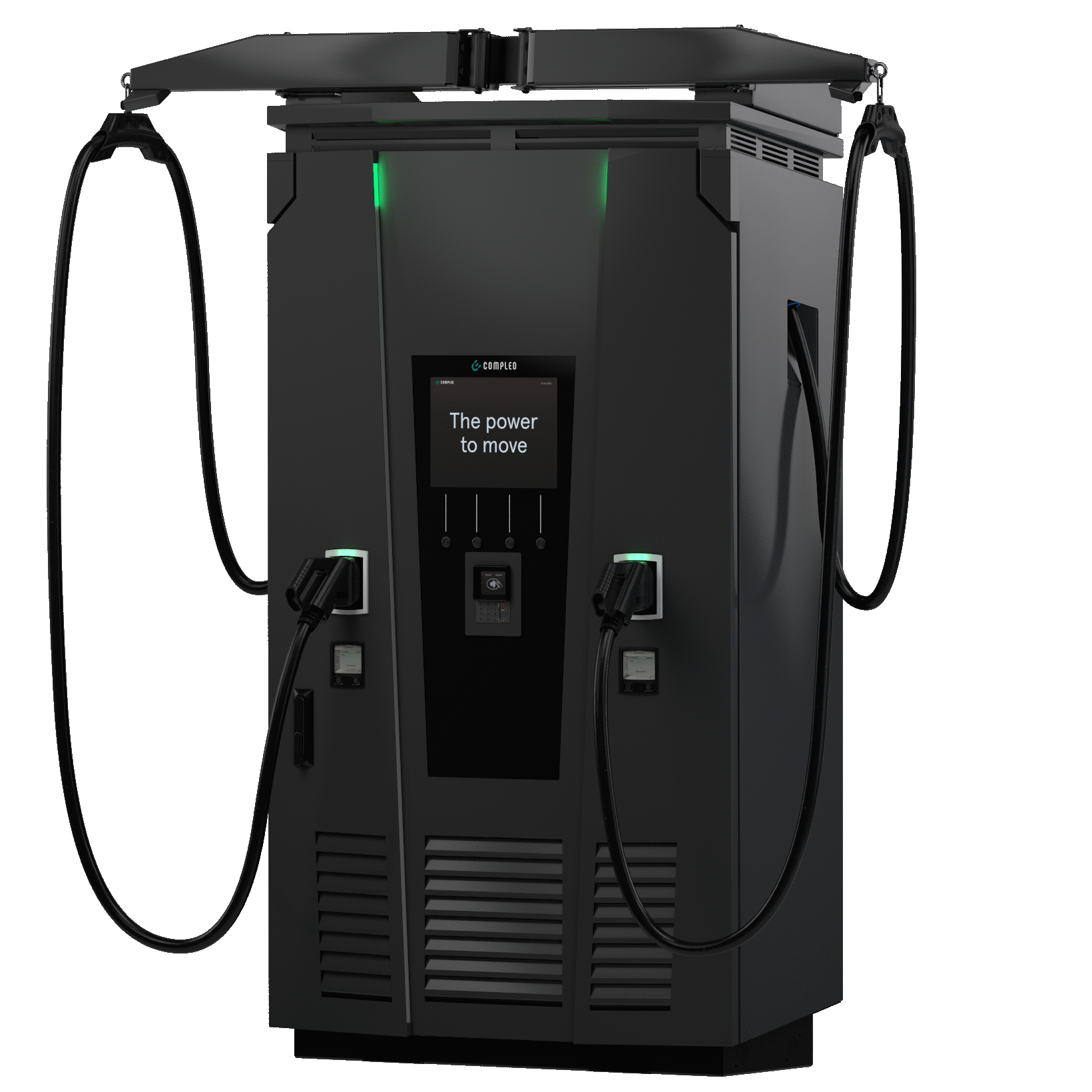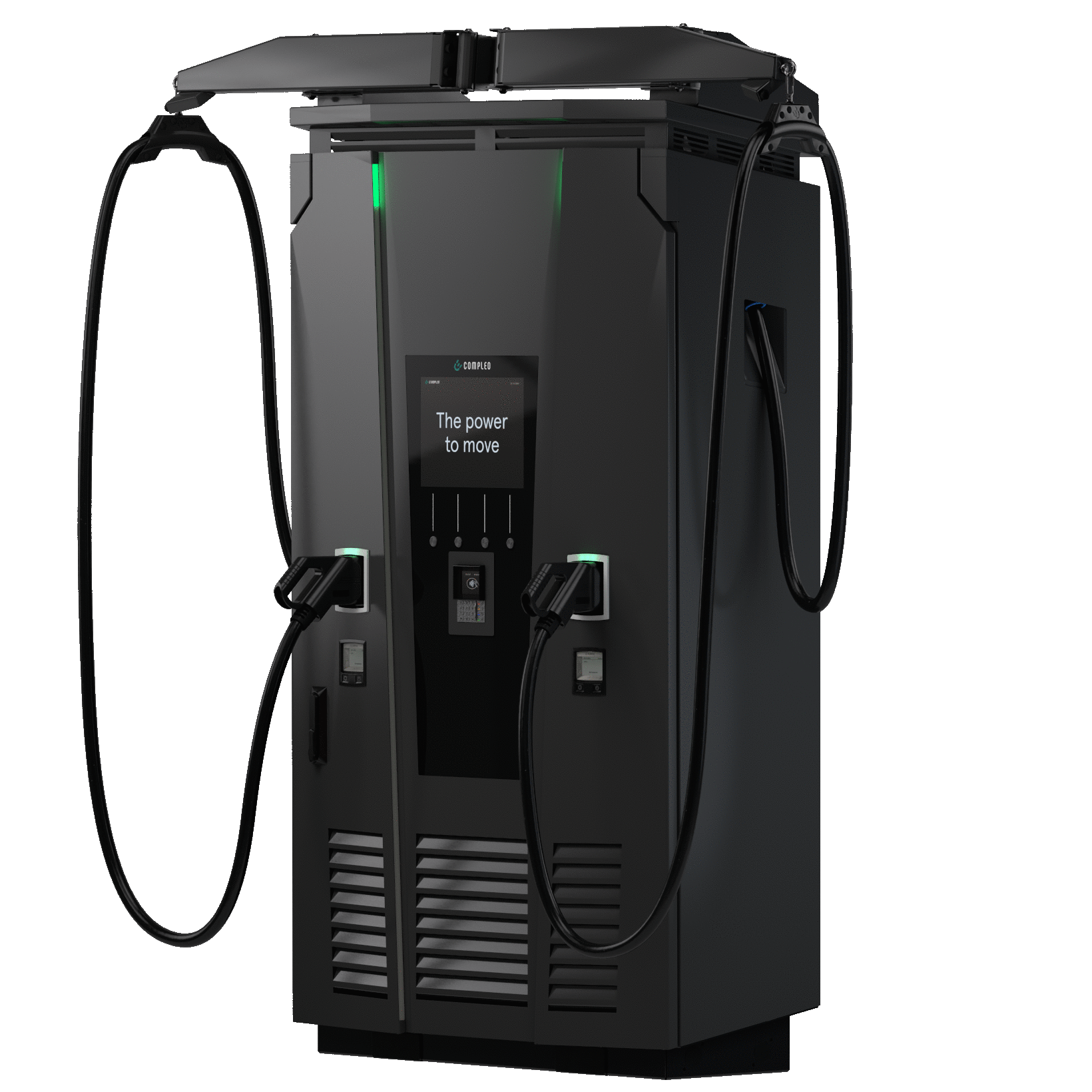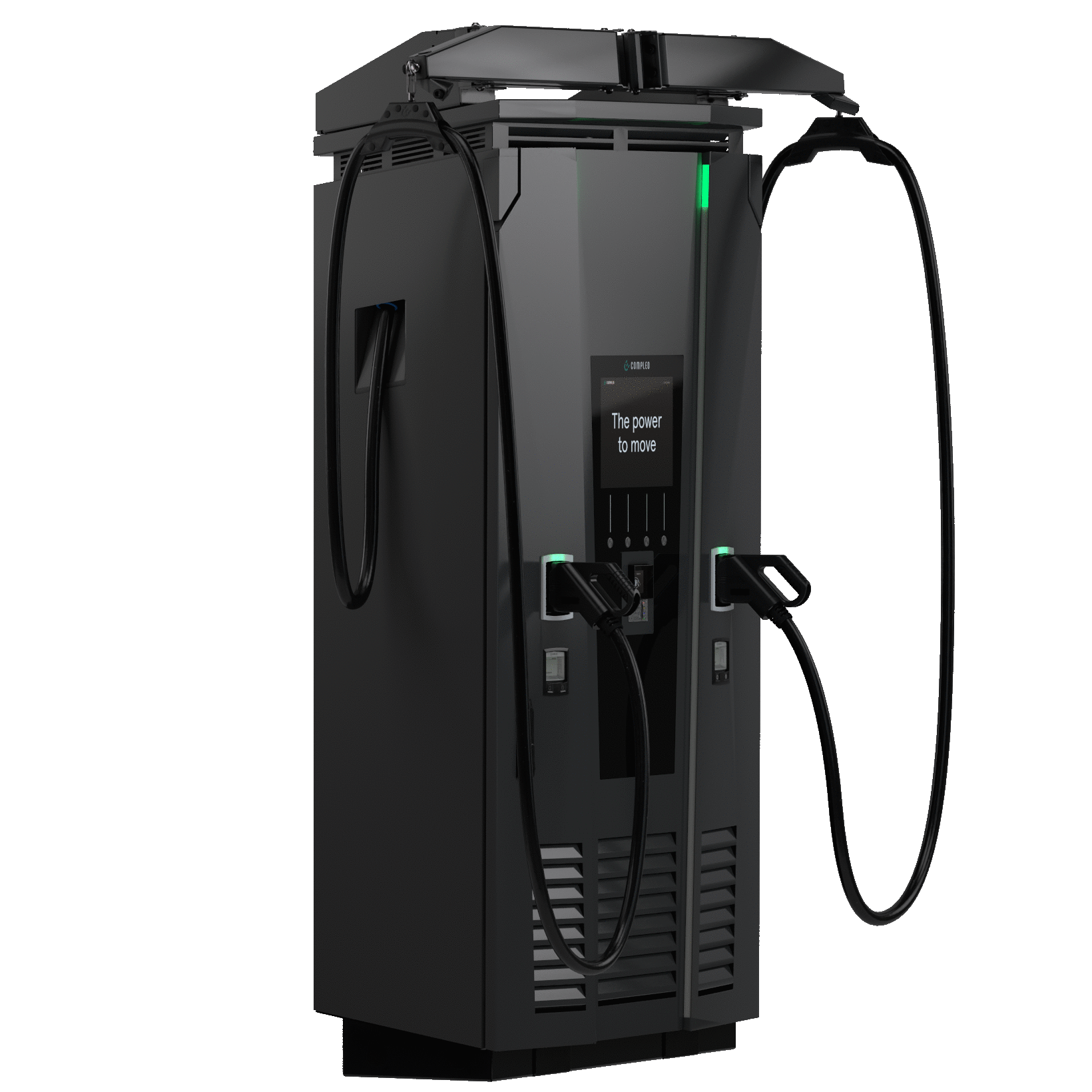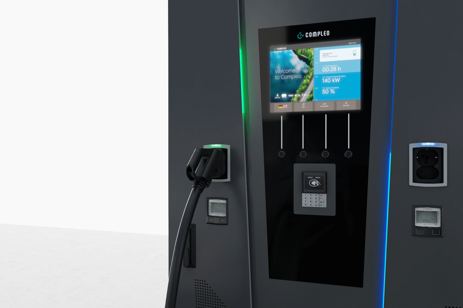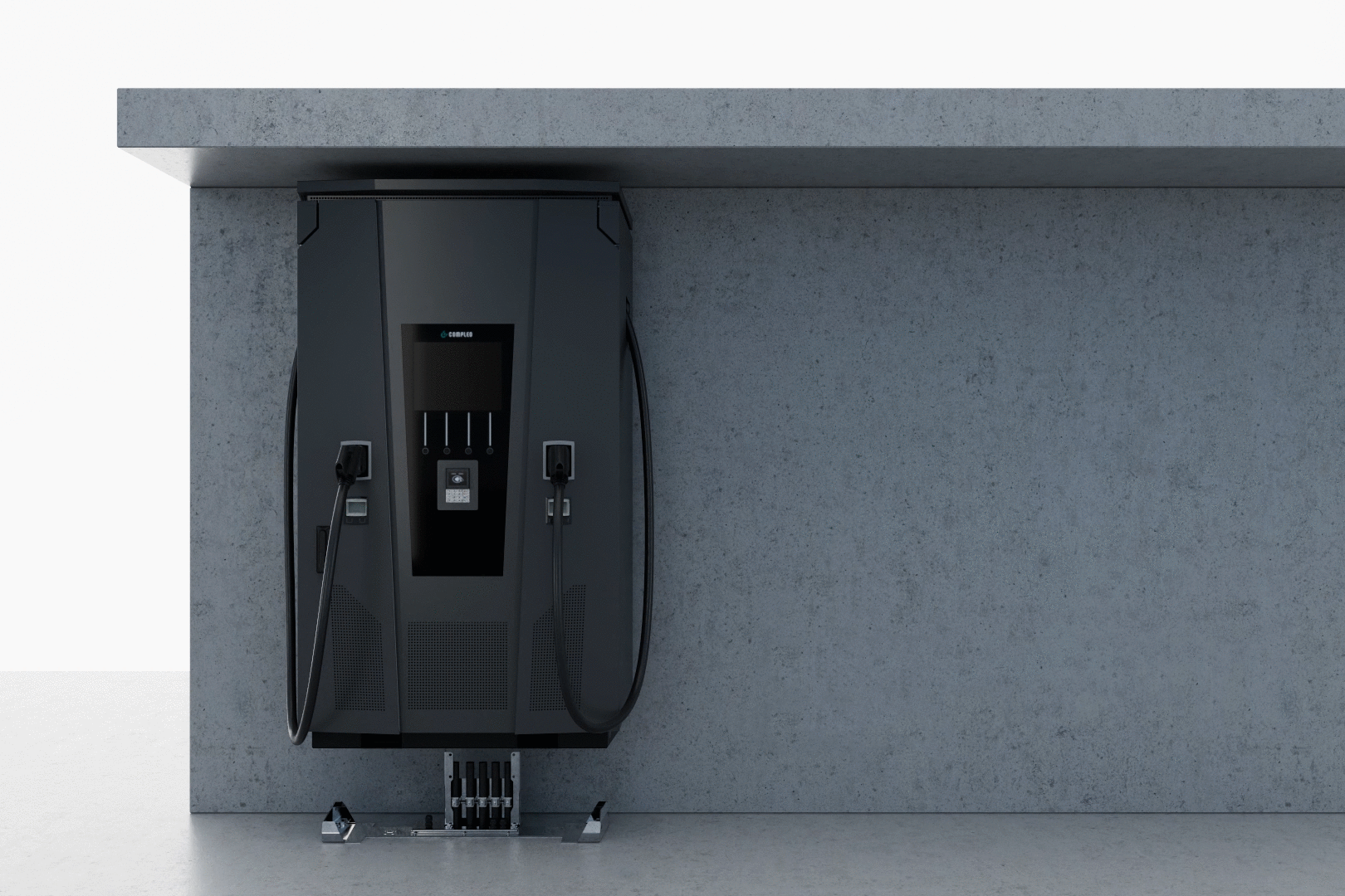 Charging connector | 2x CCS charging cable (3,5 m); optional 2x CCS charging cable (6 m) with integrated cable management system | 2x type 2 socket, incl. sliding cover |