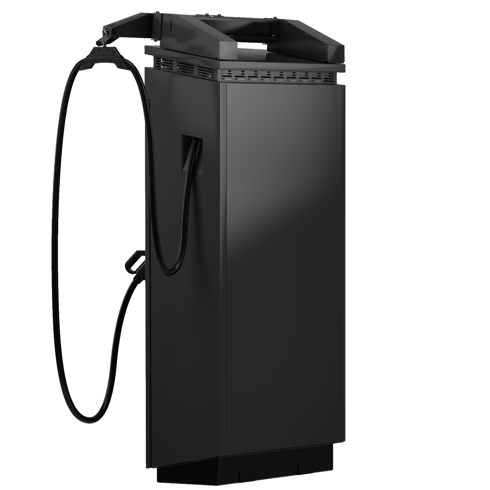 The cable management system is simply added after the HPC Charger has been set up. As a space saver, it only requires the same height as the Charger when it is safely lowered onto the WireHub. With the cable management system, the eTower has a height of 2180 mm and can be installed under roofs.